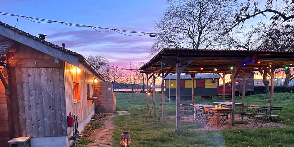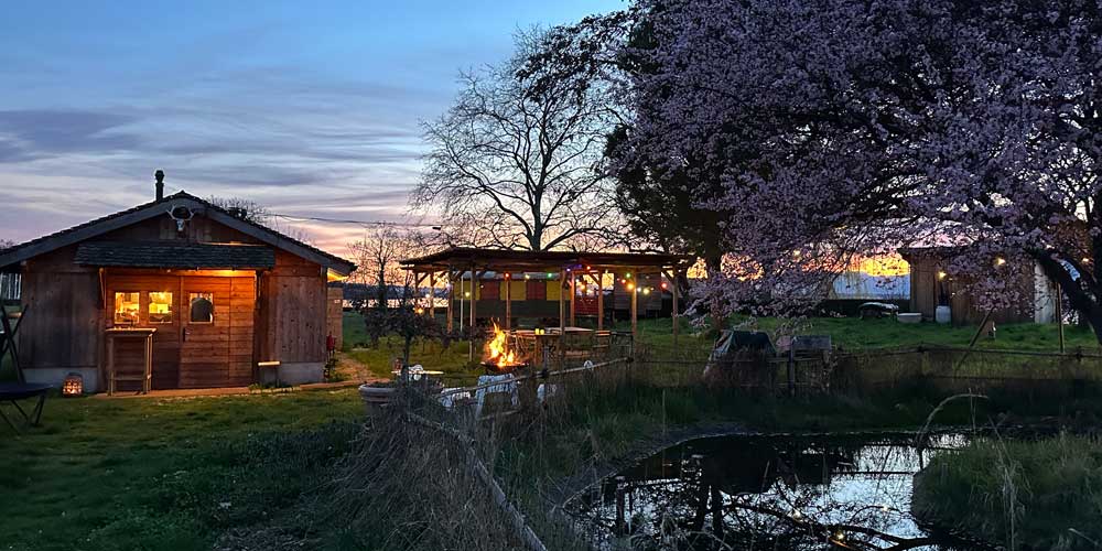 Le poulailler se trouve au milieu du pré, au bord du lac Léman, dans le village d’Hermance, à 15 km de Genève. L’accès se fait à l’angle du chemin des Fossés et du chemin piéton longeant le quai, à la hauteur du débarcadère (voir carte en pied de page). La nuit, une guirlande de lumières colorées vous guident le long du chemin.